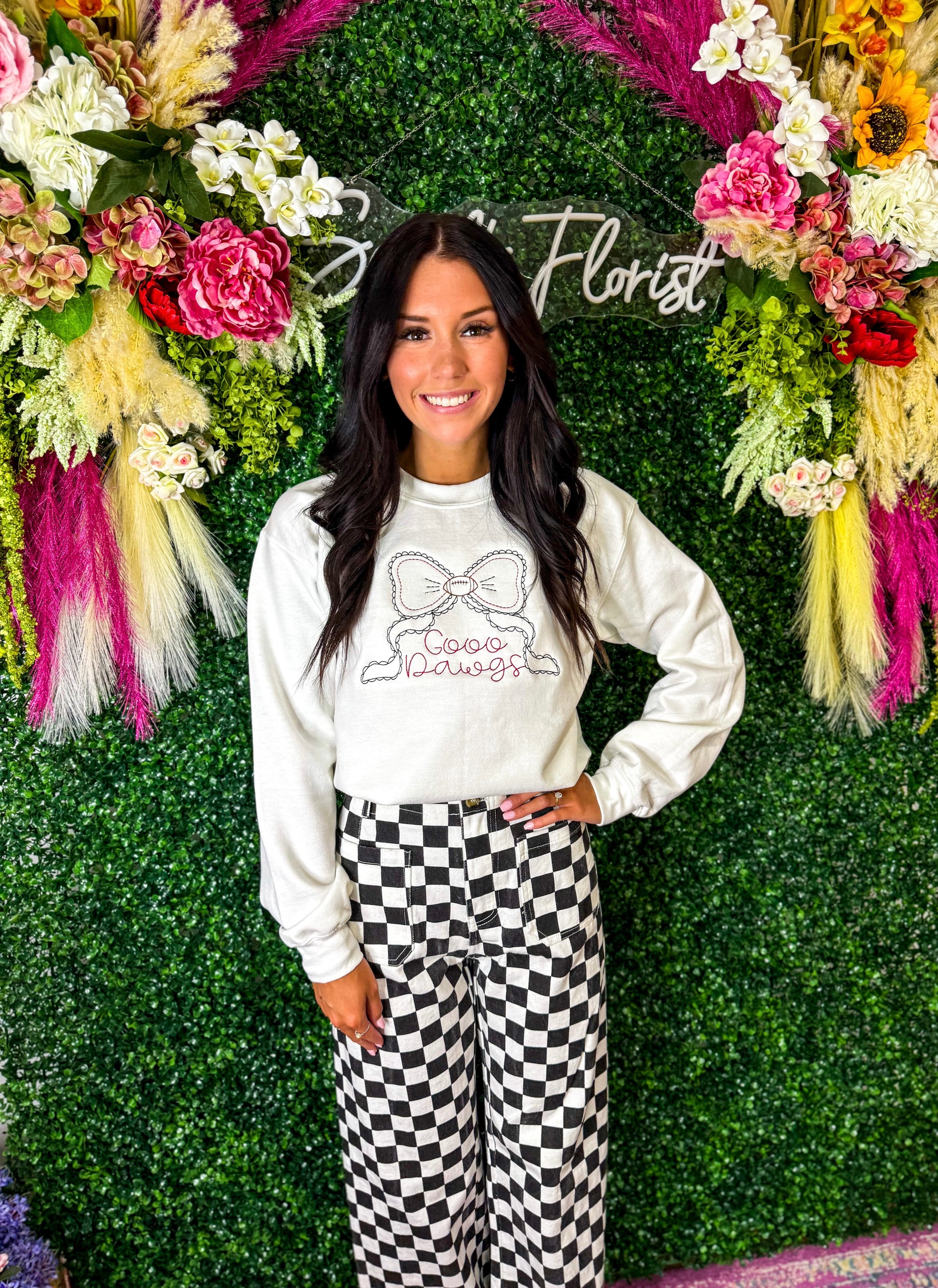 Get ready to cheer on the Dawgs in style with our comfy and cute sweatshirt, the perfect game day essential! Stay warm while showing off your team spirit and make a statement with this game day must-have. Go Dawgs!